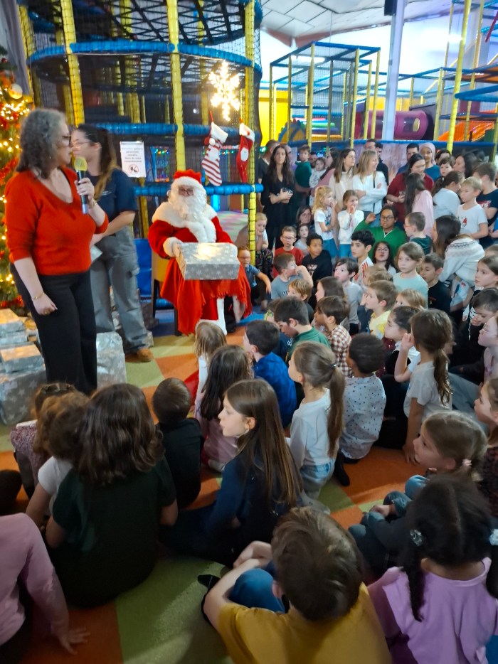 Après les activités proposées aux enfants et aux parents (parc entièrement ouvert, loterie, blind test) ce fut l’arrivée du Père Noël avec la remise des cadeaux.